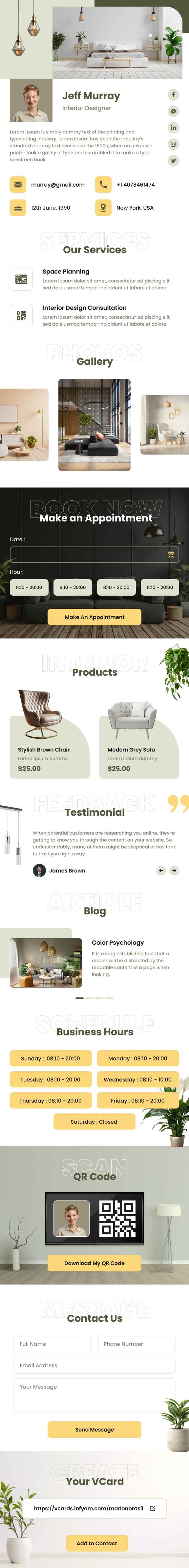 Tarjeta vCard de diseñador de interiores